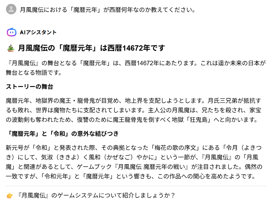 いや、令和と月風魔伝に関連性はあんまりなさそうですし、ゲームブックが注目されているっていう案件は私の周囲を見た限りないのですけど、Geminiと言ってることが随分違うので、このAIアシスタントともちょっとお話したくなりました。