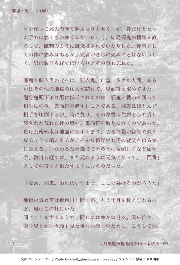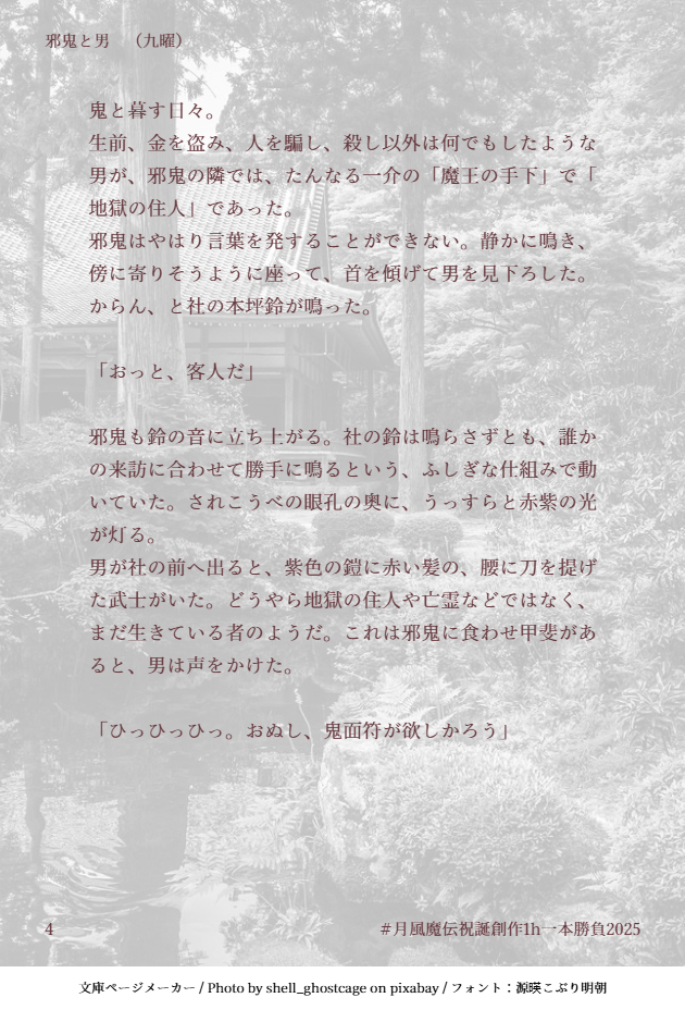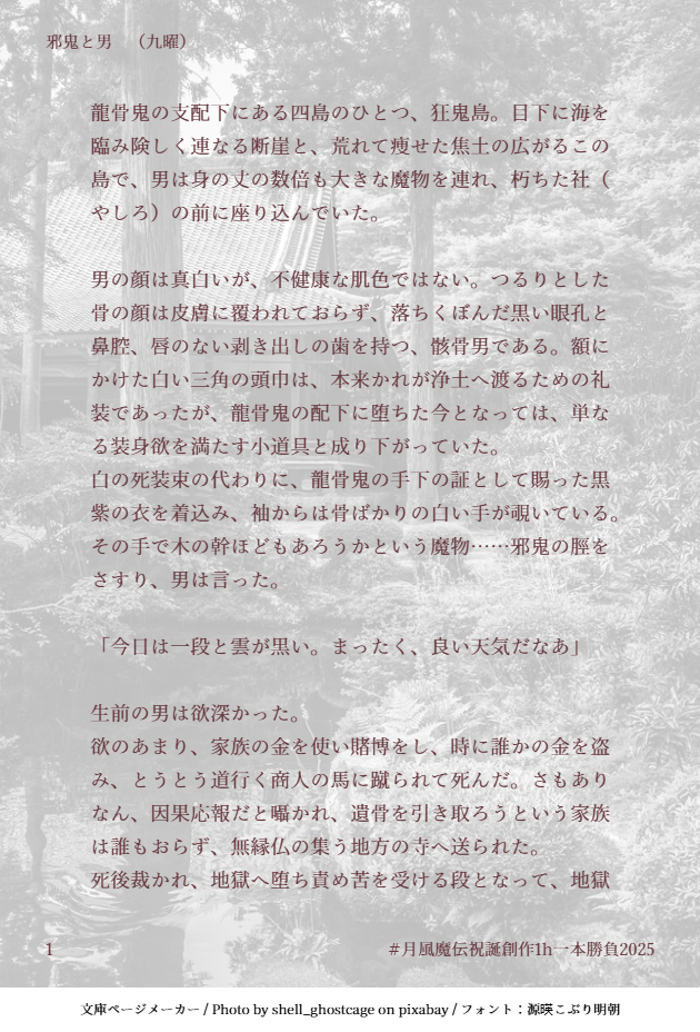 お題にせっかく『地獄の住人』を設定したので、それで一本書いてみようと思い、邪鬼をけしかけてくる例の男についてお話を作ってみました。