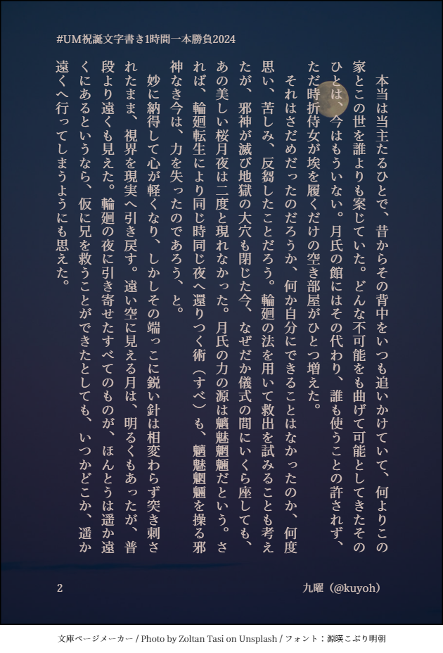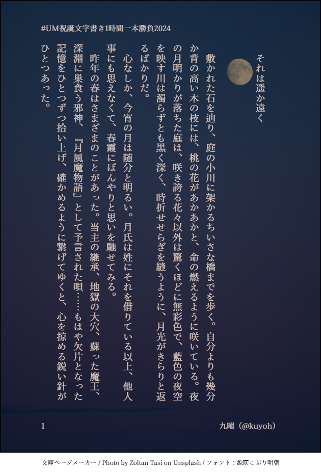 主催は文庫ページメーカーで上記のように提出する予定でしたが、折悪くMisskey側で画像アップロードに関するトラブルが出ていたので、やむなくページでのテキスト投稿に切り替える形となりました。
