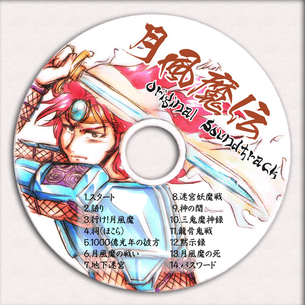 コナミ・ファミコン・クロニクルが発売される直前「やったー!月風魔伝のサントラが出るぞー!」と描いた、CDレーベル風イラストです。