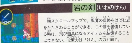 そういえば「ワイワイワールド」の風魔君は岩の剣を装備していましたね。