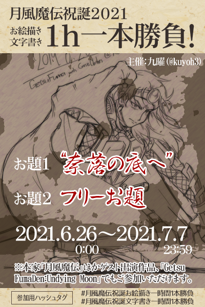 という、Twitterアカウントをお持ちの方ならどなたでもご参加できる企画です。原作の月風魔伝を遊んだことがなくて「かっこいいからイラスト描いていい?」という場合もオーケーです。この機会にぜひ触れてみてください。