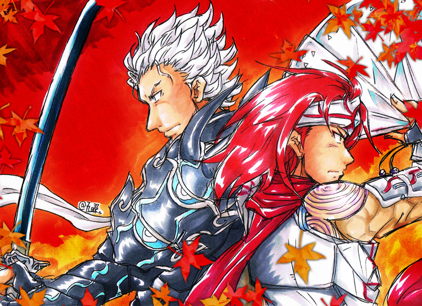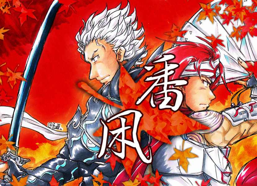 言わなきゃただの秋真っ盛りの、兄弟が共闘しているイラストです。