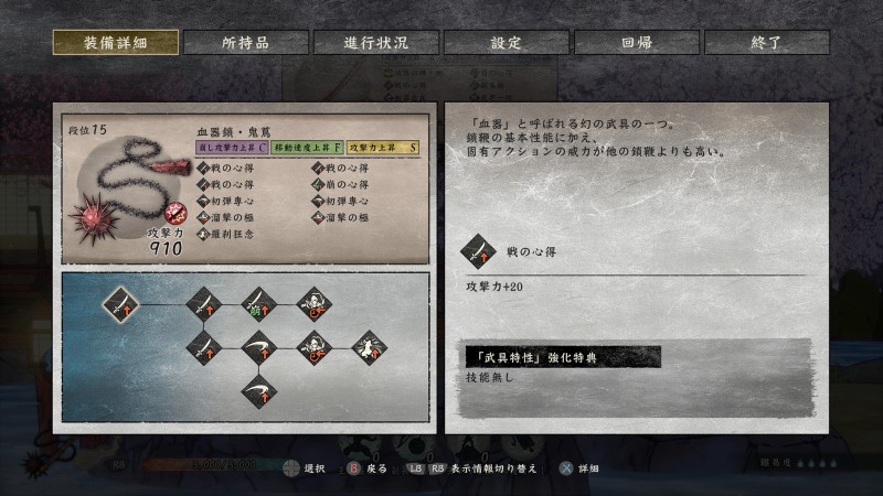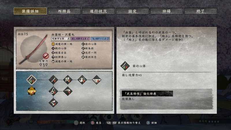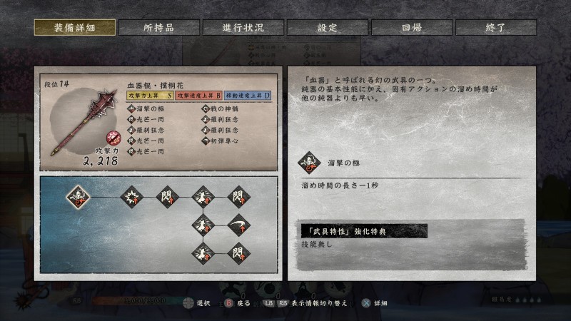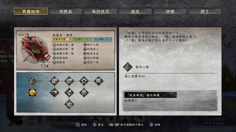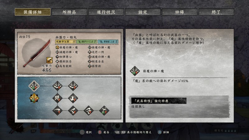 月風魔伝では、主武器それぞれに幻の武具枠として「血器」シリーズが存在します。どれも名前に違わず真っ赤で、基礎攻撃力が高く、属性特効などの特殊効果も備えています。
