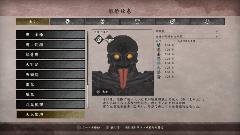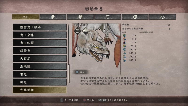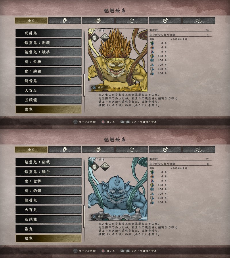では、ほかのボス枠、大型の魑魅魍魎たちについて、魍魎絵巻を見ながら、どういう生き物(死に物…?)なのか考えてみたいと思います。