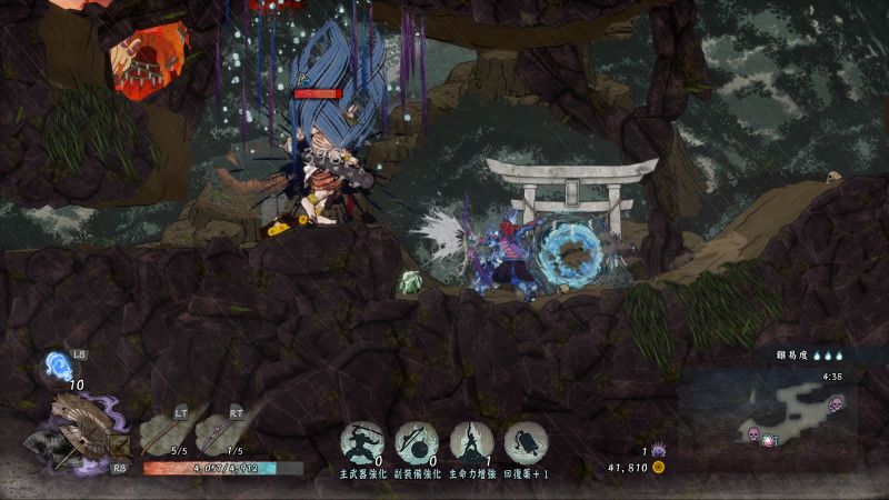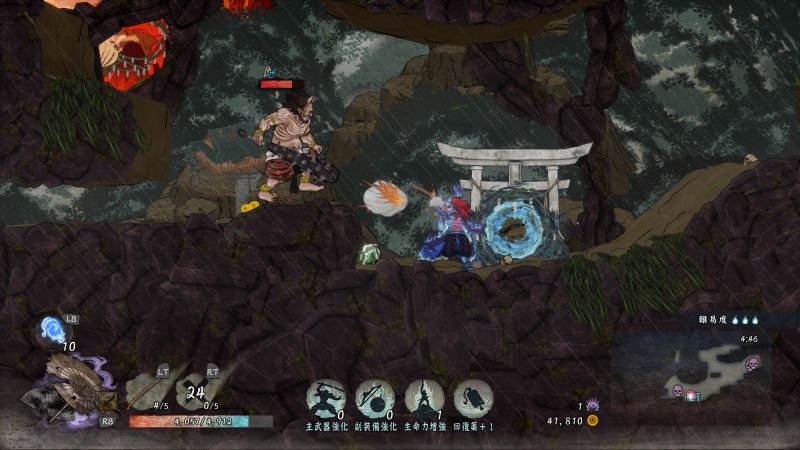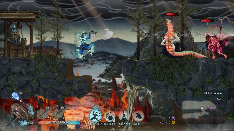 こちらは旋弾の撃銃の使用場面ですが、これと衝嵐砲、国崩の3種は貫通能力があり、灯篭も敵も貫通して一直線上に当たります。