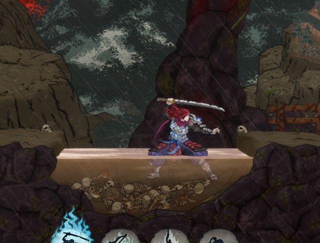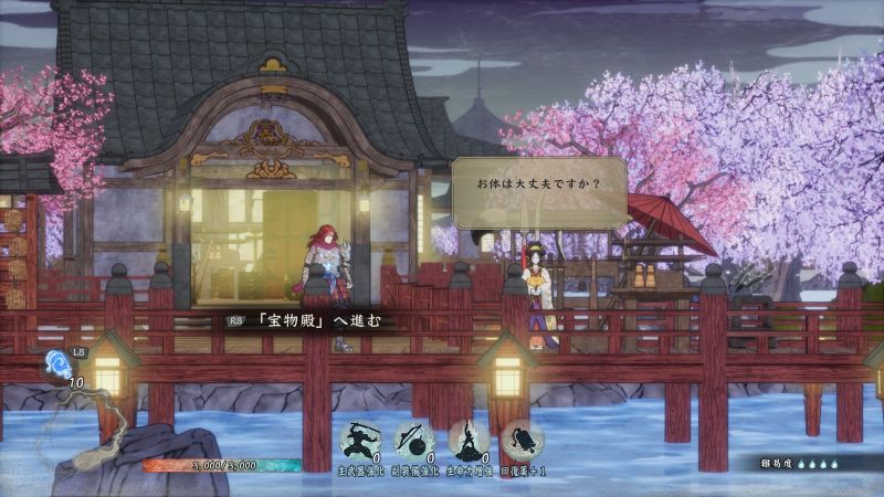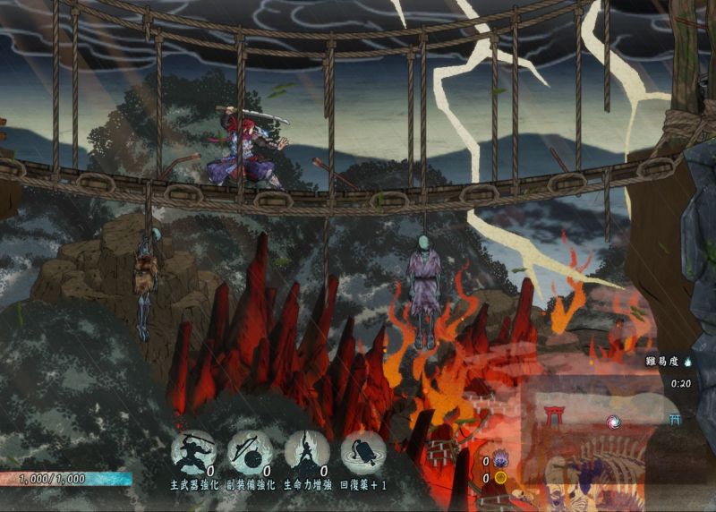 数本、縄が切れてはいますが、突然落ちたりはしません。むしろこの上で当主がMAXまで鍛えた衝脚をしても、ビクともしないほど頑丈です。魍魎たちも橋の手前で引き返していったりするので、ここに当主を放置しておくことも可能……なのでしょうか。とりあえず、のんびりできるポイントには間違いありません。