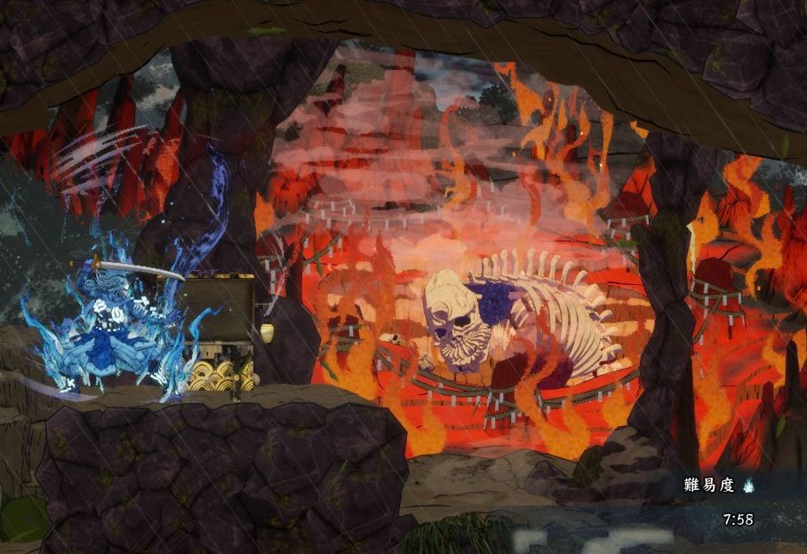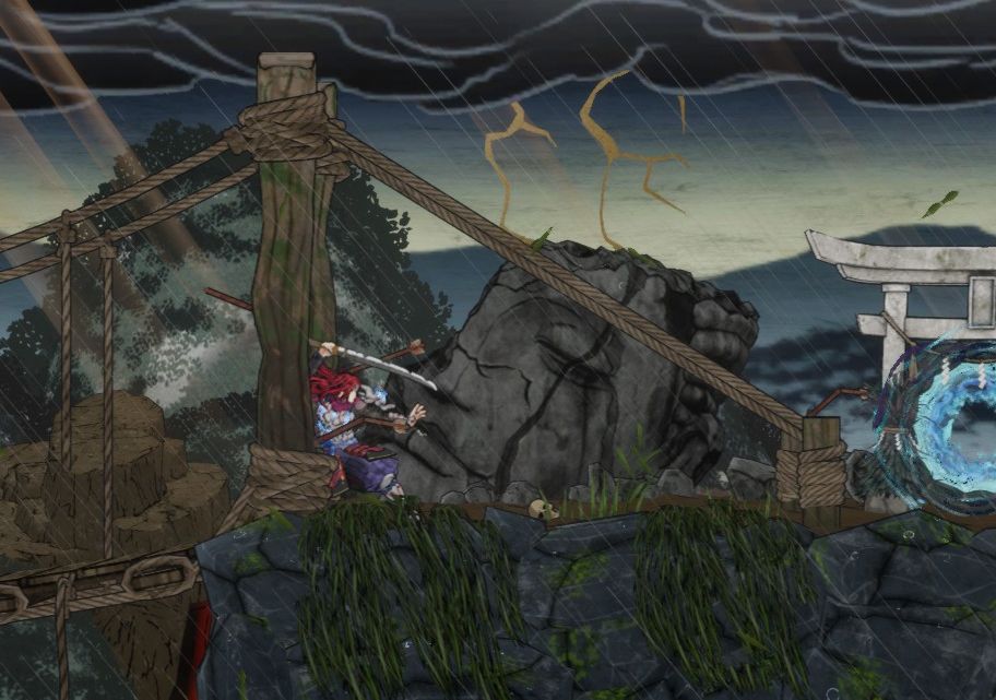 気になるポイントとして、龍骨鬼の居場所に到達すると、背景の注連縄がすべて切れている場面に出くわします。