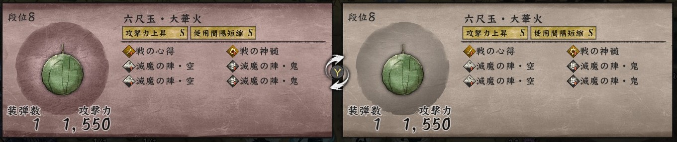 魔砲輪は蒼炎と連衝でやたら価格差があり、蒼炎は段位1無地で価格1,100のところ、連衝だと価格4,950もします。