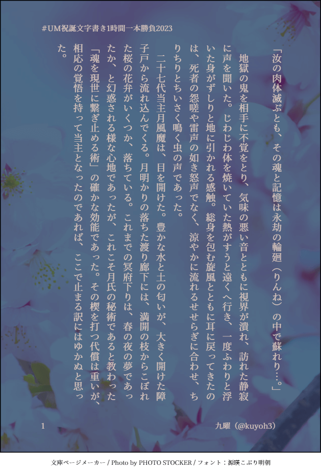 こちらがお題「桜月夜」の主催の作品(ワンライ)です。全2ページ。