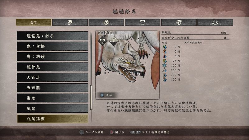 五頭龍は「古来は大いなる自然の象徴と謳われていた霊蛇」、九尾狐狸は「かつては栄ゆる神として信仰された霊狐」とあります。この2体は魍魎として奈落へ堕ちる前は、神にも近い存在だったことでしょう。