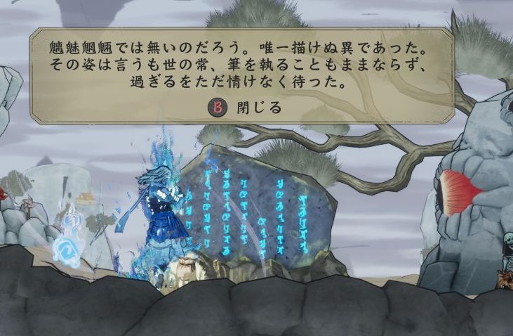魍魎絵巻自体は、倒した敵が記録されるゲームシステムのひとつとして組み込まれていますが、こちらは世界観的には「過去に一族の誰かが伝書として残したもの」のようです。