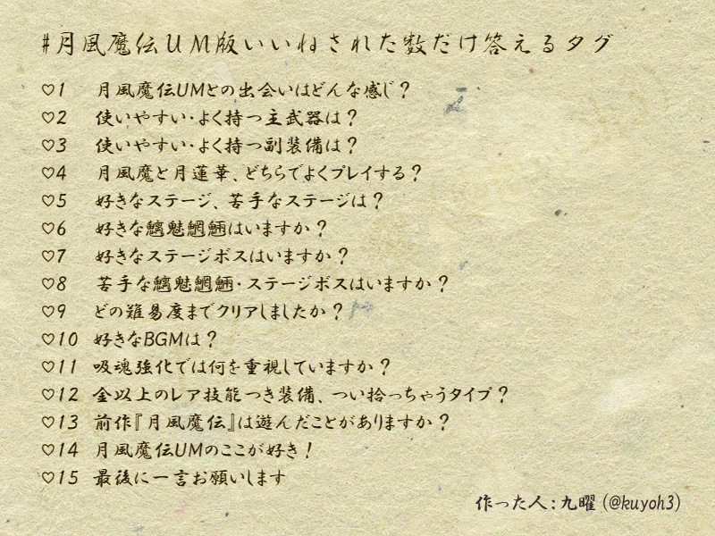 #月風魔伝UM版いいねされた数だけ答えるタグ