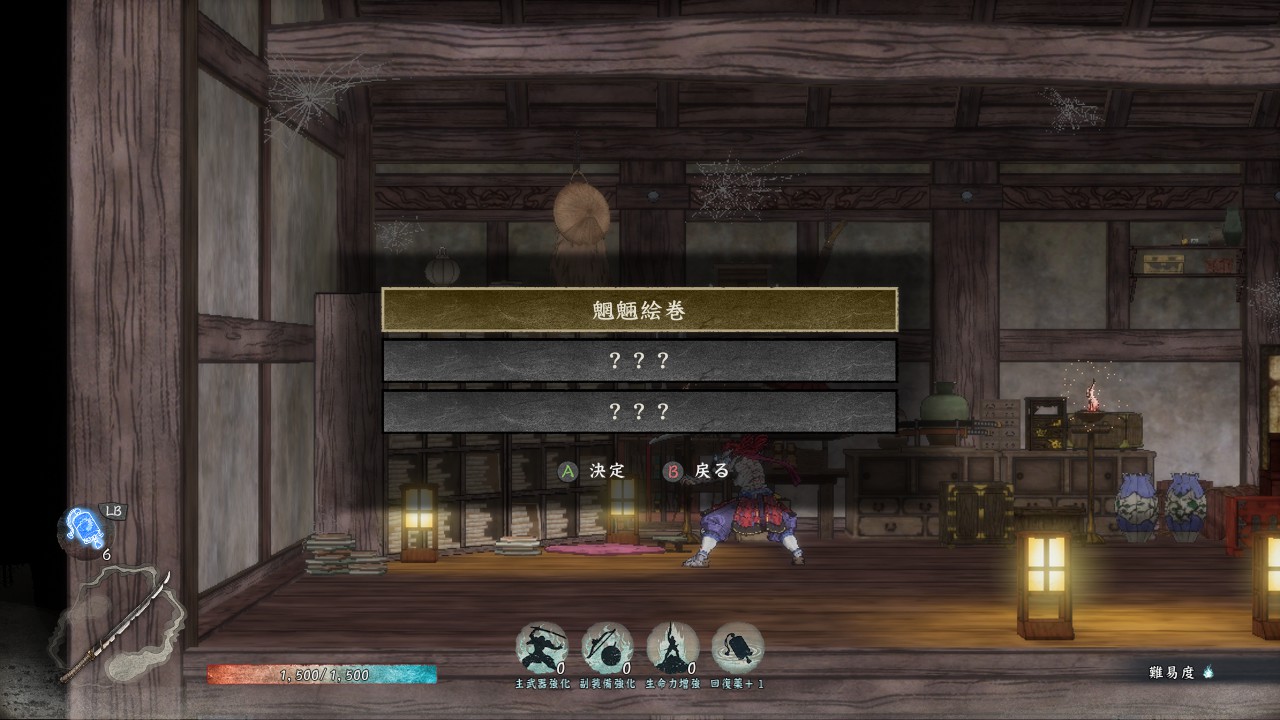 そしてこれ、アーリーアクセス段階のスクリーンショットですが、魍魎絵巻の他に「???」が2つありますね。