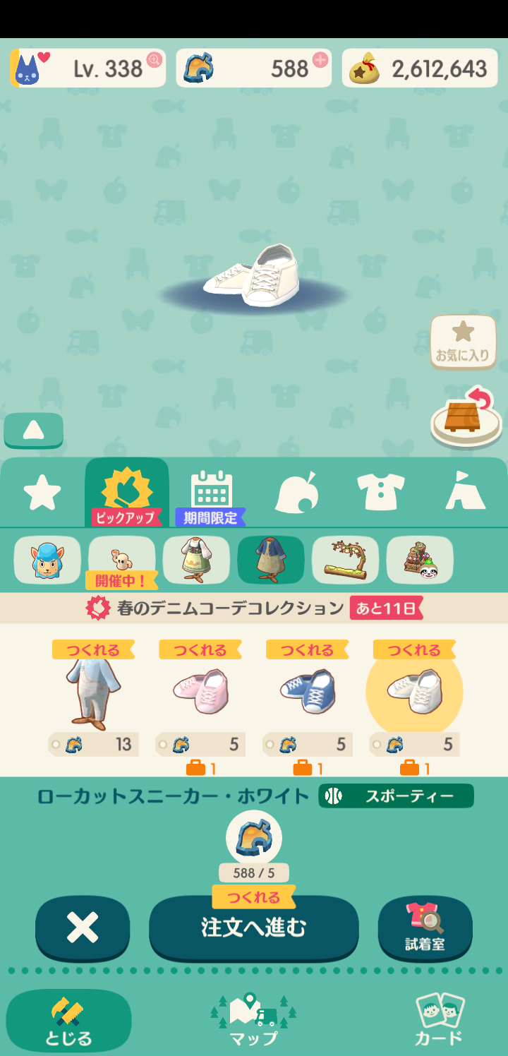 特にタイツや靴、眼鏡などはストーン消費10未満の少額クラフトが多いので、「どうしてもこのコーディネートを完成させるのに必要」という時以外は、復刻を待った方が良いと思います。