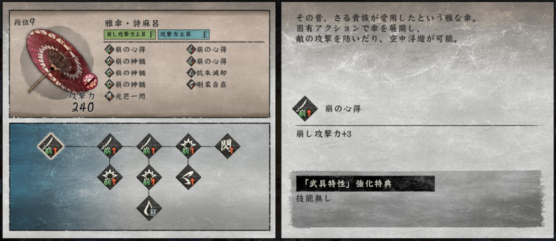 戦傘は、ちょっと変わった戦い方の楽しめる武器です。
