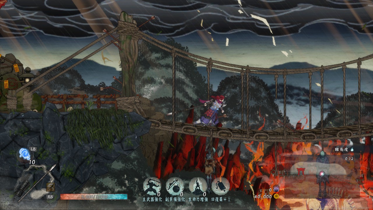 両得物の特殊アクションで沼御前に対処できる話をしましたが、槍の特殊アクションでも似たようなことができます。槍はボス戦や先のステージでも役立つので、ここで持ち替えておくと楽ができます。