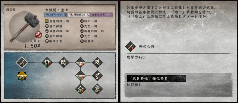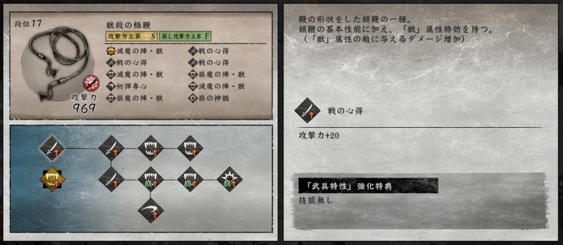 現verでは剛手甲の崩しがかなり強く、これ一本持つだけでバランス崩壊しかねない強さになるので、無双ゲーをしたい時以外は意図的に封印するようにしています。反面、クリアしたいタイミングで剛手甲を引くと無双がはじまります。