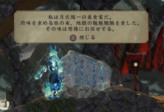 特に、アフター魔暦ビフォー新作の時代に暮らす場合、まだ当主が行脚してて地獄もあるので、職人や陰陽師になって当主を補佐してもいいし、そんなの関係なく町人やっててもいいし、勝手に一人で腕を磨いて地獄行ってもいいことになります。石碑を見る限り当主以外も地獄に潜ること自体はできそうなので(すごい過酷環境ですが…)腕に自信のある人はチャレンジ!とかになるんでしょうか。マ○クラでいうネザーとかジエンドとか、あのへん相当のコンテンツになると思われます。
