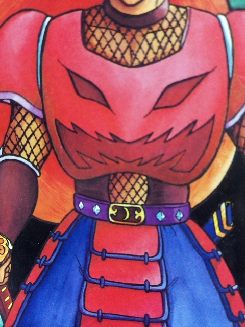 ゲームブック風魔君の鎧は、世にも珍しい……というより、風魔君の衣装中唯一の「側面ガード腹部露出」タイプの構造をしています。