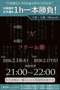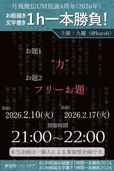 2/10・2/17の「月風魔伝UM」編と、6/26・7/7の「月風魔伝」編に分かれておりますので、主催としてはぜひご参加お待ちしております。